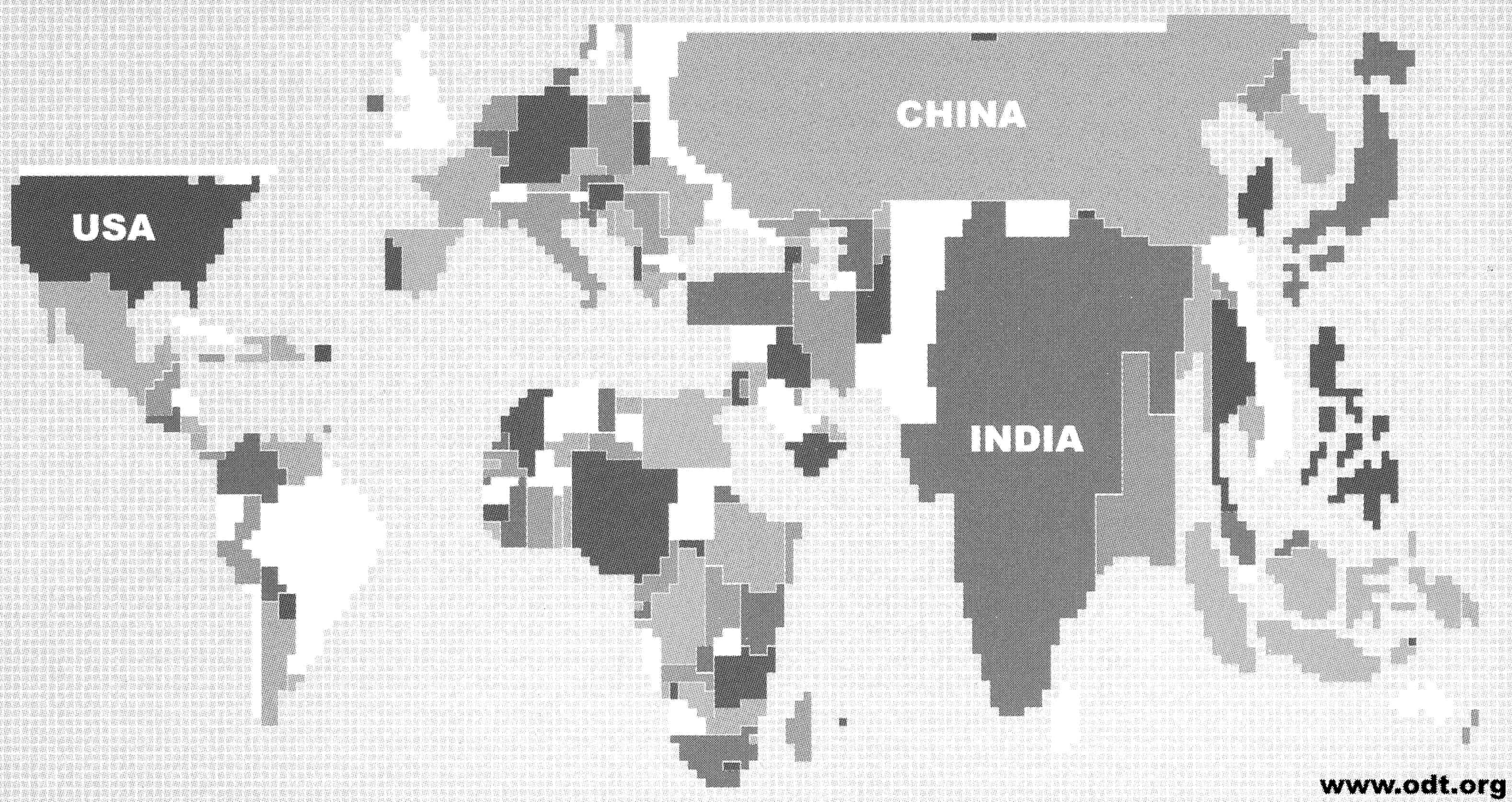 To get there you must first know that it exists A few years ago I was talking to Scott Daumiller of Kalispell, Montana, about the epidemic of federally-ordered road closures and road obliterations in a region known as "the Flathead." Daumiller, who’s in his 40s, has lived his entire life in the resource and recreation-dependent community, has been an avid outdoorsman and map collector since he was a kid. He has noticed that topographical maps of his area have been changing over the years. When he was in his teens, Daumiller and his friends would identify caves, mines, cabins and other points of interest on topo maps and go find them. "They’re still there, all right, but the maps don’t mention them any more," Daumiller said. There has been a definite political agenda afoot to keep people out of the forests. What used to be known as "public lands" are now, as far as the federal government is concerned, "federally-owned" lands. This change in political climate has prompted the road closures and rules forbidding public access to forest lands. The omission of landmarks and points of interest on maps is a politically-motivated attempt to further diminish public interest in the great outdoors. State of the Village Report To use the term "village" in a political sense awakens memories of Hillary Clinton when she was pushing her socialist agenda on America in her capacity as the first lady; if you use the politically-supercharged terms "cultural diversity" or "multiculturalism" in public debate, "liberals" pay attention to what you are saying and "conservatives" become very angry. This is, of course, the intended outcome: Ordinary people are supposed to be divided over concepts defined by words that allow us to easily identify those of us whose ideas we are to view with disgust. In truth, advancements in communications and travel technologies have turned the world into a village and we cannot help but be exposed to the diverse spectrum of cultures present in our little planetary village. The grid map below shows world population—each square represents 1,000,000 people. Attached to the map was a set of four tables called "The State of the Village Report," which presents the world in an interesting light: