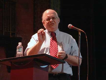 Webster G. Tarpley at Sandpoint’s Panida Theater June 17, 2006. ~Photo Jay Mock The following resolution, drafted by Webster G. Tarpley, had been electronically-submitted to and agreed upon by several 9/11 Visibility Project groups prior to the Chicago conference. When it was submitted to the Chicago conference attendees, it was overwhelmingly approved by a show of hands. We reprint the resolution for your consideration because, combined with the findings of the LA Citizens’ Grand Jury, we have all of the foundational principles necessary for good people to proceed in good faith while working toward the day when those whose murderous rampage began on 9/11 and is ongoing can be indicted, arrested, and brought to public trial before a jury.. Submitted to a candid world by Webster G. Tarpley Under the Cheney doctrine and the Pentagon’s Global Strike, U.S. forces are now on the verge of a surprise attack, quite possibly in nuclear form, against Iran. As Philip Giraldi wrote last July, the Cheney doctrine prescribes that this attack will come in the wake of a new 9/11 or new Gulf of Tonkin incident. With the U.S. and UK stalled at the UN by Russian and Chinese rejection of their plans for aggression, all indications are that such a new 9/11 is being actively prepared by rogue networks within the U.S. intelligence community of CIA, NSA, DIA, NSC, Pentagon, and State Department, plus allied and privatized capabilities. The neocons, many of whom face early criminal indictment, are opting for a flight forward into war. With the visits during late May of Israel’s Ehud Olmert and Britain’s Tony Blair to Washington, the aggressor coalition seems to be ready. Cheney’s controllers now require only a pretext, a provocation to justify their attack. Will they attack under the cover of the soccer World Cup, to be held in Germany during June? An attack in Europe would help recruit coalition partners. Will they sink a U.S. warship in the Gulf? In this case, a third country could do the job, with the blame going to Iran. As in the case of 9/11, they will manufacture the provocation they need for the next phase of the war of civilizations. Arabs and Moslems will be involved as patsies—under the label of Hezbollah, Iran, etc. An attack on Iran will kill Chinese in the oil fields and Russians in the nuclear reactor sites. It will begin the inexorable slide into World War III. Neocon fascist madmen Lieber and Press, writing in the March-April issue of Foreign Affairs, promise that a thermonuclear first strike against Russia and/or China is eminently feasible. The same neocon networks which promised the Iraqi cakewalk are now promising a nuclear cakewalk. This time the result could be the incineration of the U.S. and large parts of the world. The neocons must be driven from public life, even as the September criminals are brought to justice. The attack on Iran has little to do with unproven allegations that Teheran might acquire a nuclear device. Israel alone has nearly 500 nuclear weapons of all types, plus an ABM system. The insanity of the Anglo-American elites reflects the death agony of the U.S. dollar. As Iran, Russia, Venezuela and even Norway prepare to buy and sell oil in rubles, euros, and through barter deals, hundreds of billions of dollars of central bank reserves are poised to quit the greenback. The result would be a dollar panic, with dollar owners stampeding towards the exits. The U.S. currency might lose between 25% and 75% of its value. With emerging market currencies and stock markets crashing, the tropism of the U.S.-UK elites is toward war in a bid to retain world domination. Bush retains the support of some 35% of the U.S. population. With this 35% he can resist impeachment and wage war indefinitely. These are persons who have accepted the government’s nightmare vision of 9/11. They are terrorized, literally scared out of their wits. They are relatively impervious to the many valid arguments which can be made against the Iraq war, against Abu Ghraib, Guantanamo, torture, secret prisons, illegal renditions, NSA wiretaps, and totalitarian police state policies. These they regard as necessities of a war forced upon the U.S. by a foreign aggressor. The only hope of reaching these people, and thus of attrition and erosion of Bush’s base, is to demolish and discredit the 9/11 myth itself. The attacks came from the U.S. secret government, not from Bin Laden’s cave. The Charlie Sheen episode shows that the 9/11 issue offers by far the greatest bang for the buck—it is the ultimate weapon against Bush. Only a sustained series of explosive revelations and exposures of 9/11 truth can cripple the Bush regime, roll up the rogue networks, and block the new 9/11 and October surprise scenarios. It is here that the treachery of the gatekeepers emerges. Left liberal figures like Noam Chomsky, Amy Goodman, Michael Moore, The Nation magazine, and most of Air America have stubbornly parroted the Bush-FBI lies about 9/11. There are right gatekeepers too, like antiwar.com and many of its writers. The gatekeepers must catch up with the truth or enter the dust bin of history. But what about 9/11 truth? Within the 9/11 truth movement, some still debate unanswered questions, or the incompetence and negligence theory. Others continue to embrace LIHOP, the notion that the Bush regime "Let It Happen On Purpose." In our view, these approaches are gravely deficient because they all accept the key point of the government’s demagogy: They assume that some such independent entity as "al Qaeda" really exists, and really has the capability of producing the results seen on 9/11. This is precisely the Big Lie we must reject. "Al Qaeda" could not subsist without the support of CIA (and of Britain’s MI-6, as David Shayler’s reports show). "Al Qaeda" is a wholly owned subsidiary of U.S.-UK intelligence. The true face of "al Qaeda" was that of the psychotic patsy Moussaoui, who was deemed a delusional para
